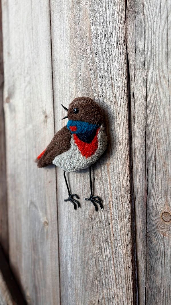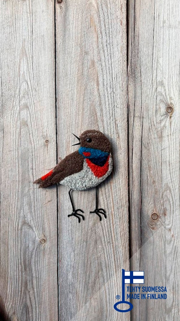 Sodankylässä käsityönä valmistettu lintuaiheinen seinäkoriste. Sinirinta, jota kutsutaan usein Lapin satakieleksi, on tunturikoivikoiden ja puronvarsien pajukoissa viihtyvä laululintu. Se on tunnettu monivivahteisesta laulustaan, joka sisältää paljon muiden lintujen matkintoja.